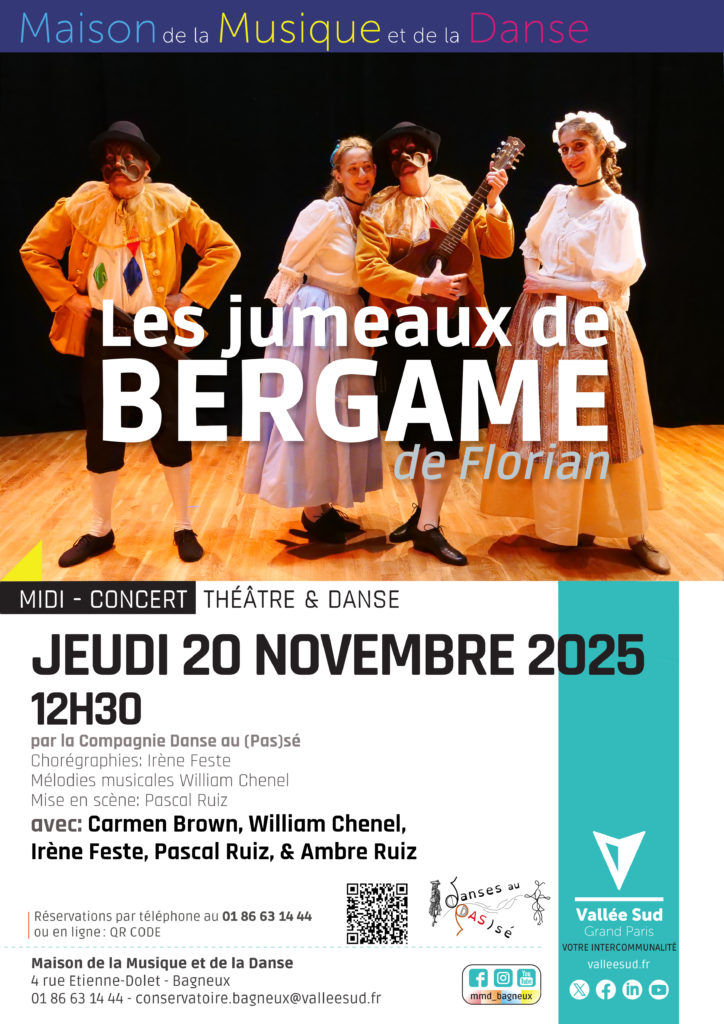 Les Jumeaux de Bergame 20 octobre 2025Chorégraphies, Cie Danses au (Pas)sé, Spectaclesifadmin Réservation en ligne : https://my.weezevent.com/les-jumeaux-de-bergame-de-florian